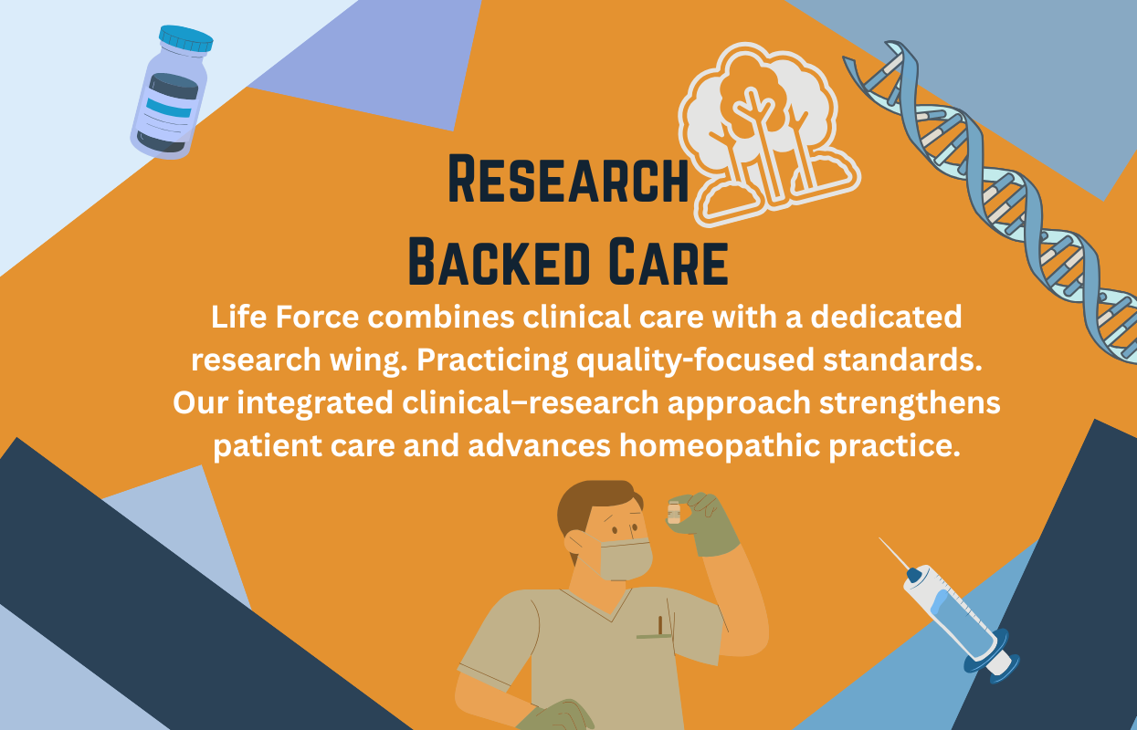 Life Force combines clinical care with a dedicated research wing. Practicing quality-focused standards. Our integrated clinical–research approach strengthens patient care and advances homeopathic practice.